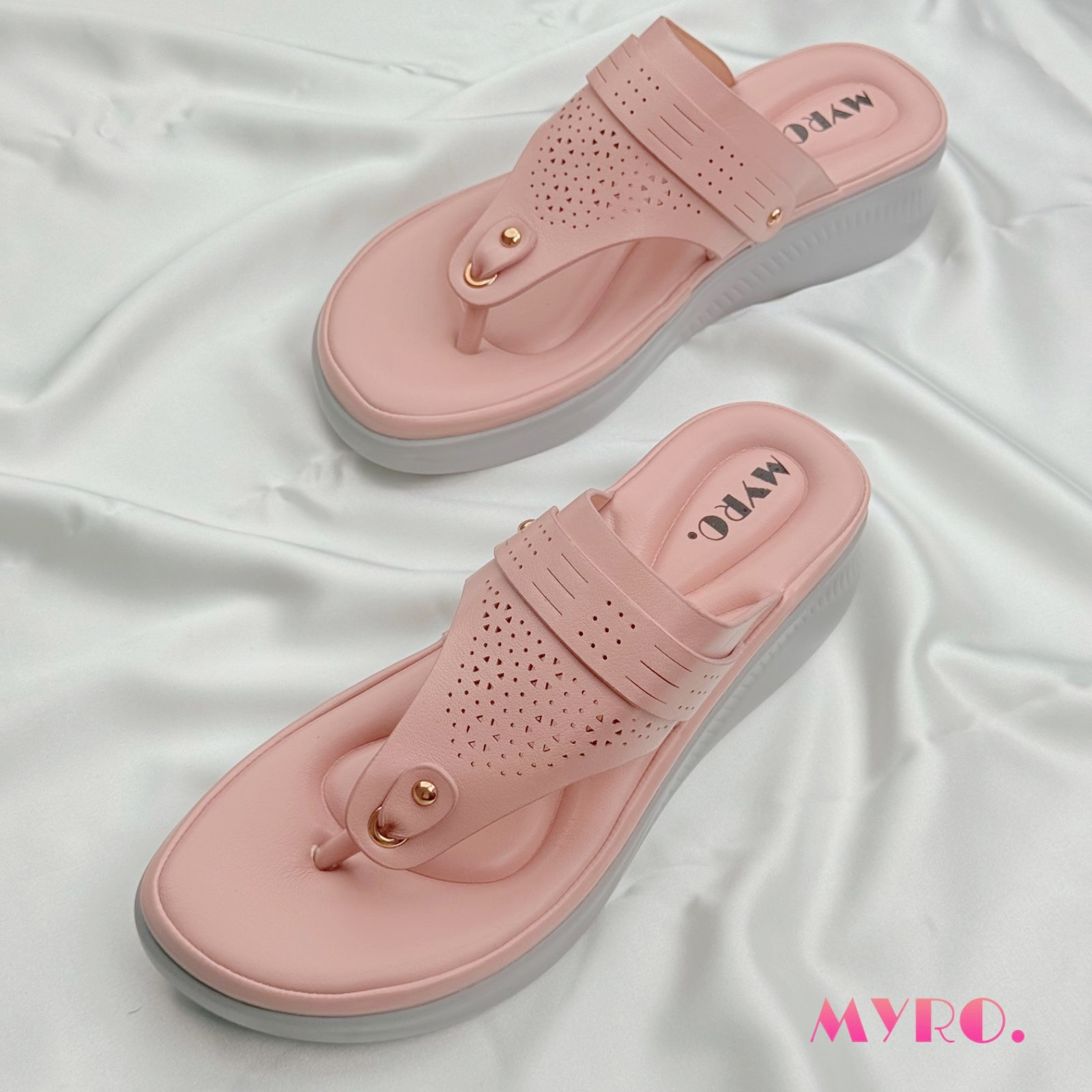 Myro Jenny White Rose Gold Low Heel