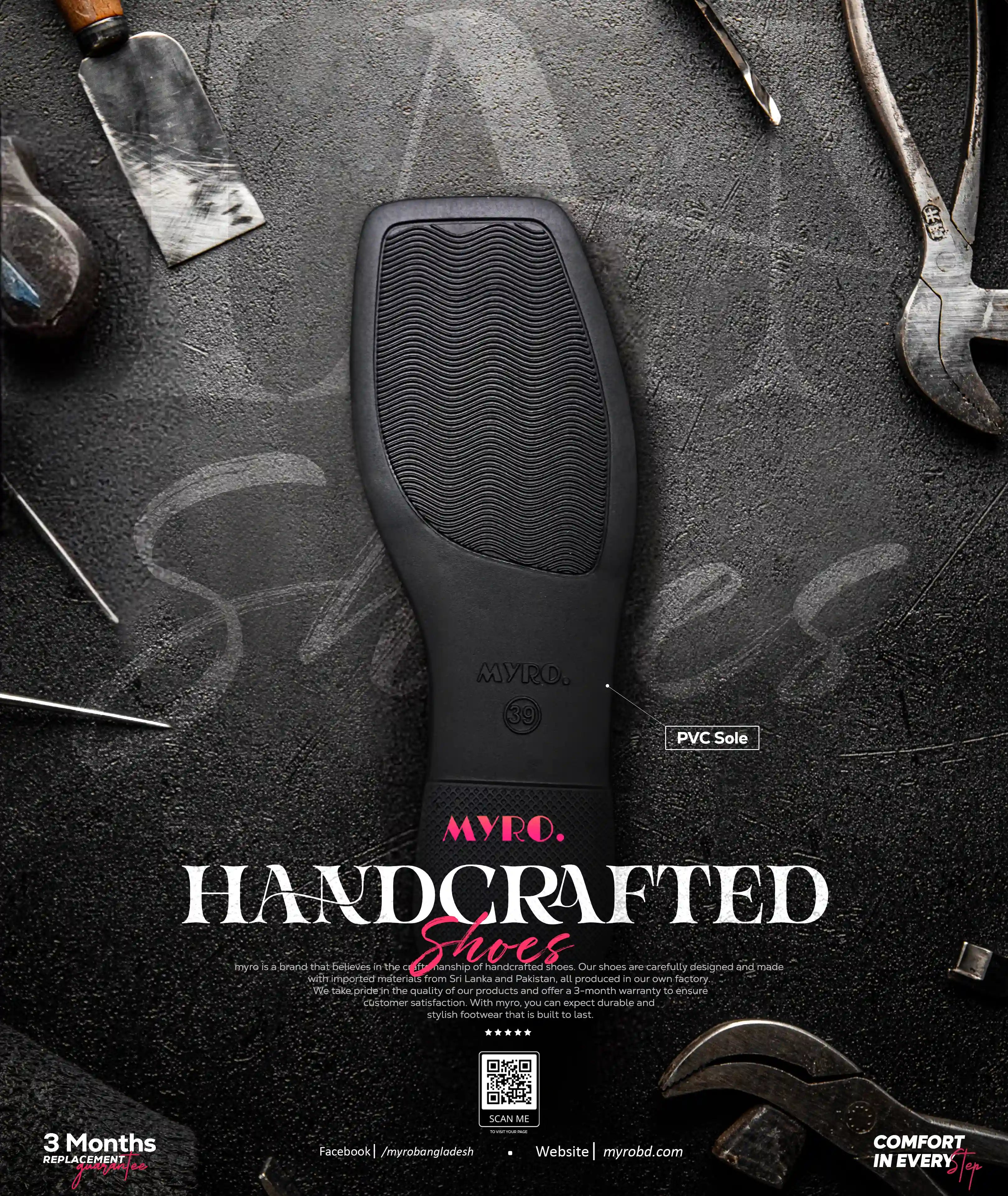 Each pair of MYRO shoes is carefully handcrafted by skilled artisans, combining traditional craftsmanship with modern design. From cutting and stitching to finishing and quality checks, every step is done with precision and care to ensure comfort, durability, and timeless style.